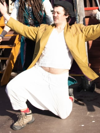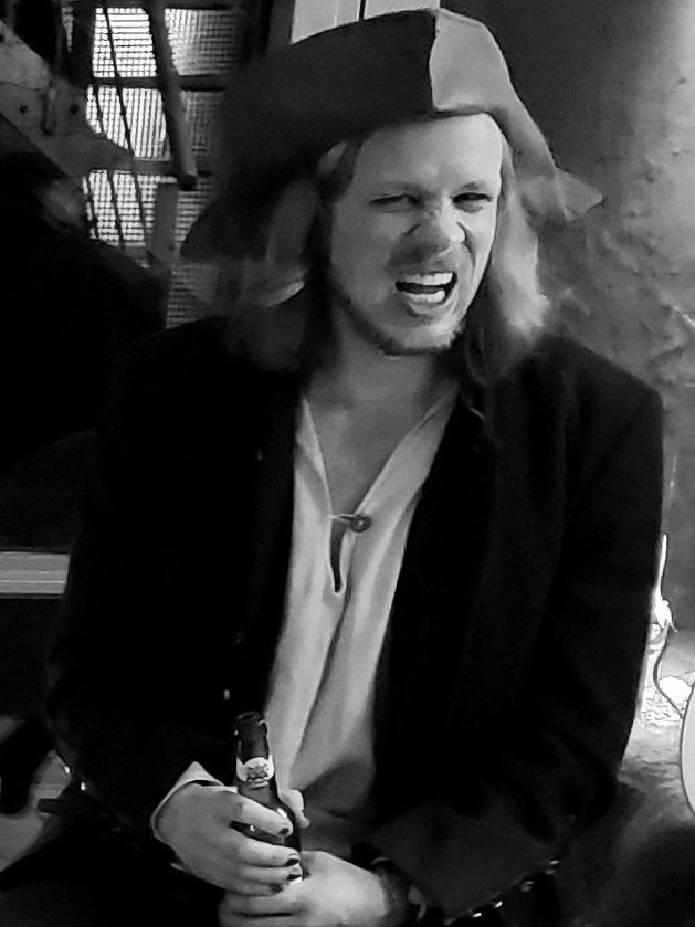 Es zog ihn in die Ferne und so packte er seine 7 Sachen, reiste nach Venedig und konnte dort auf einer Galeere als Vortrommler anheuern. Über Europa hinaus, Mexiko, Karibik bis nach Australien ist er an so mancher Untiefe gestrandet, an manchem Riff gekentert, bis es nach vielen Jahren auf See das Schicksal so wollte, dass die Galeere auf dem berüchtigten Piratenstützpunkt Belize anlegte, wo die bis dato recht ungetakteten Piraten um Käpt‘n Schwefelfuß seine Wege kreuzten.