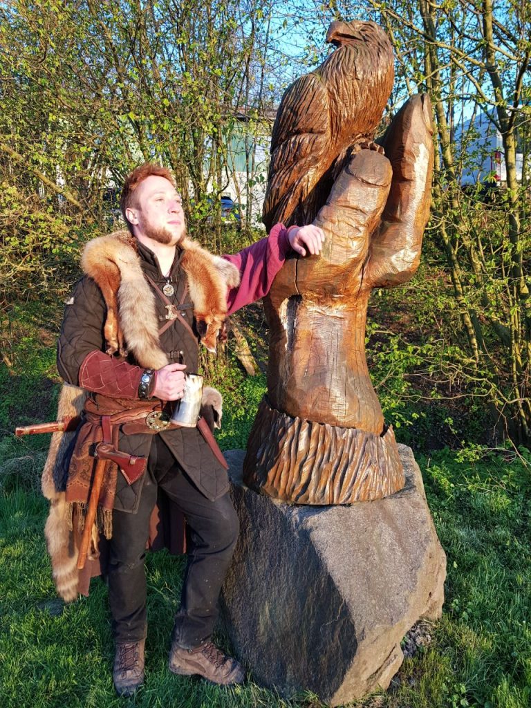 treibt sein Wesen und Unwesen noch nicht sehr lange zur See. Bevor er anfing, die sieben Meere und so manche rostige Klinge zu kreuzen, war er mal als Drachenschreck vom Rhein berüchtigt. Ursprünglich wollte er nämlich als Drachenjäger berühmt werden, konnte nur sein potentielles Potential nicht entfalten, da seit dem Erscheinen eines gewissen Siegfrieds der rheinische Subtyp des "Feurix dragonensis" ausgestorben ist. Allerdings entdeckte er bald seine Vorliebe für rheinische Burgfroileins. Da waren auch ziemliche Drachen dabei und irgendwie brachte ihm sein überaus fleißiges und tapferes Wirken dann doch den Ruf vom rheinischen Drachenschreck ein. Da ihm aber langsam die Rudi- und Alimente für die vielen kleinen Drachen zu teuer wurden und manch gehörnter Ehemann mit seiner Interpretation der Drachenjagd auch nicht ganz einverstanden war, beschloss er, eine Weile außer Landes zu gehen und sein Glück auf den Meeren und den Meerjungfrauen, also ... bei den Meerjungfrauen ... zu versuchen. Zur See war es dann nur eine Frage der Zeit, bis die singenden, klingenden Piraten von Käptn Schwefelfuss seine Wege kreuzten. Hier umgeben von soviel Gesangstalent entschloss er sich, mit auf Kaperfahrt zu gehen und an Bord auf Minnesänger umzuschulen. Das läuft schon sehr gut und bringt der Crew richtig was ein, denn viele geben freiwillig ihr Hab und Gut, wenn er sagt: Geld her oder ich singe... Und seit der Erkenntnis, dass Seetang noch besser als Ohrenstöpsel funktioniert als die früher verwendeten dicken Maden aus der Kombüse, kommen wir mit seinen Darbietungen auch gut und ohne Kopfschmerzen zurecht. Wir werden ihn erstmal in der Crew behalten und er will auch noch bleiben, bis er am Rhein nicht mehr steckbrieflich gesucht wird und man in Köln und Düsseldorf trinkbares Bier braut - und das wird dauern...